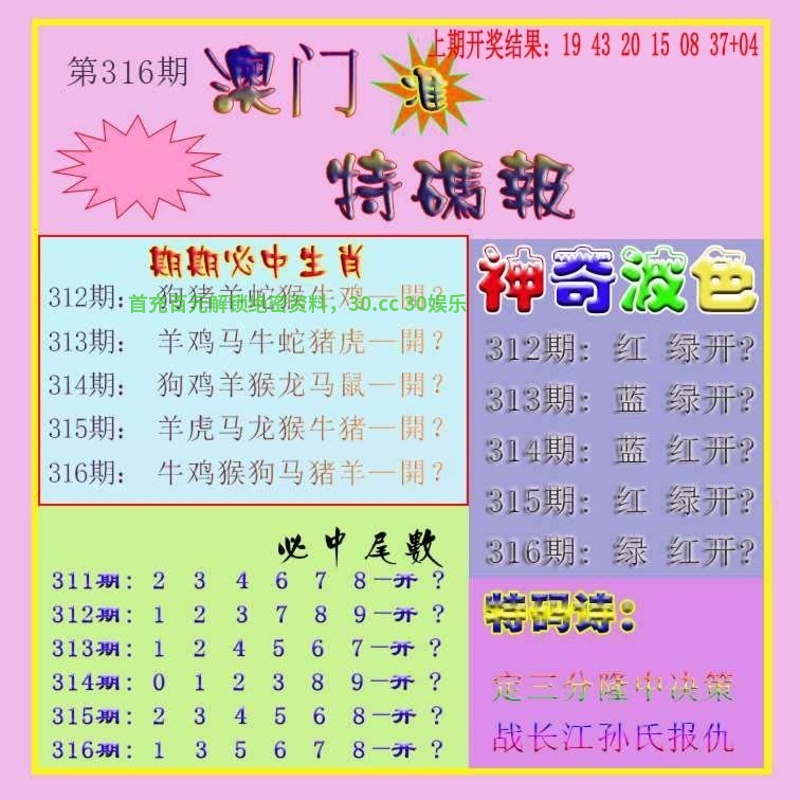 | 319期:重磅【内部①码每晚19:30】公开! |